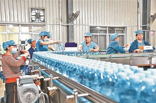 工人在中源山泉水公司生產(chǎn)線上作業(yè)。