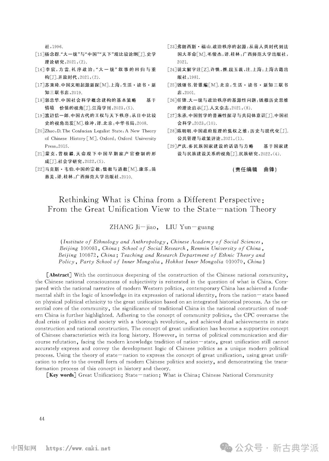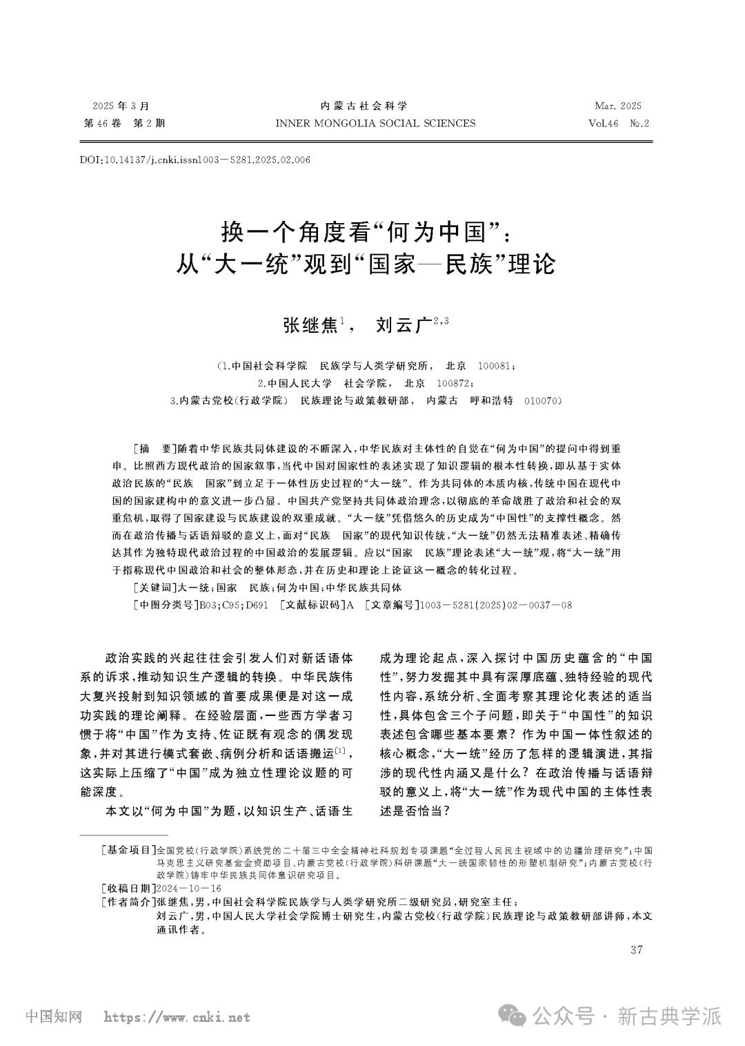 換一個(gè)角度看“何為中國(guó)”:從“大一統(tǒng)”觀到“國(guó)家—民族”理論