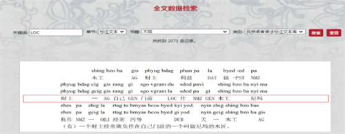 該系統(tǒng)將整合各類民族語言的大規(guī)模語法標(biāo)注文本資源,包括“語法標(biāo)注”系列叢書、“新發(fā)現(xiàn)語言”系列叢書、各民族語言簡志等,這是對自20世紀(jì)中后期以來我國積累的重要民族語言資源進行數(shù)字人文研究的典范工程。目前該項目進展順利,在民族語言資源庫建設(shè)方面已取得積極突破,尤其是對新發(fā)現(xiàn)語言叢書、簡志叢書等原書內(nèi)容的搜索能夠精確定位到每一行,在很大程度上突破了民族語言學(xué)界資源使用的困境。