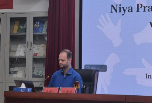 倪爾思·舒本博士是歐洲研究委員會(European Research Council)所資助項目“絲綢之路語言網(wǎng)”(The Silk Road Language Web)的成員。他專注于研究于闐語和吐火羅語等中亞古代語言的書面遺存,探索不同古代語言間的詞匯和語法借用模式。本次講座他首先介紹了其研究所聚焦的語言:印歐語系中的印度—伊朗語族語言的基本情況、譜系分類與親緣關(guān)系,包括印度雅利安諸語言與伊朗語、尼雅俗語的關(guān)系以及歷史語言學(xué)中實體復(fù)制與模式復(fù)制的區(qū)別。隨后,他聚焦犍陀羅語的一種方言尼雅俗語,指出這種用于文書或管理的語言與伊朗語存在廣泛且深入的語言接觸。這種接觸不僅體現(xiàn)借詞上,還涉及形態(tài)句法層面。為進一步說明語言接觸的具體表現(xiàn),舒本博士著重講授了尼雅俗語中與“手”義相關(guān)用法,通過幾個平行案例,論證了尼雅俗語對伊朗語的繼承和內(nèi)部創(chuàng)新,展示了歷史語言學(xué)研究的經(jīng)典路徑和方法。