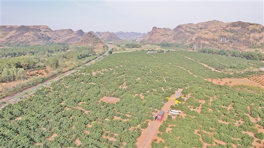 石家鄉(xiāng)石枧村鳥瞰臍橙園。