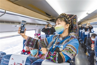 圖為12月16日,彌蒙高鐵開(kāi)通運(yùn)營(yíng),首批旅客踏上旅途。陳 暢攝(影像中國(guó)) |
