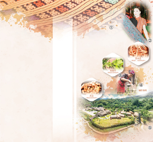 圖①:黎錦紋樣人形紋。五指山市委宣傳部供圖 圖②:五指山市民族時裝“村秀”現(xiàn)場,模特展示黎錦。 常 博攝(人民視覺) 圖③:黎錦染料的部分原料:蘇木芯、藍靛草、黃姜。 本報記者 曹文軒攝 圖④:黎族婦女過濾原料殘渣,制作黎錦植物染料。 本報記者 曹文軒攝 圖⑤:五指山市水滿鄉(xiāng)毛納村是展示海南黎錦文化的重要窗口。圖為毛納村景色。 曹銀橋攝(人民視覺) |